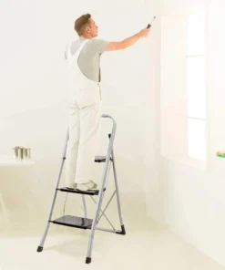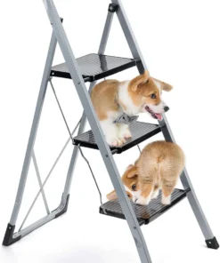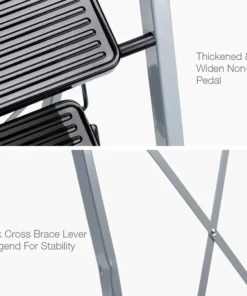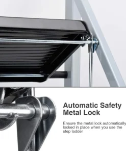 Non-Slip 3 Step Stool Folding Sturdy Steel Wide Step Ladder with Hand Grip and Locking Mechanism for Indoor Household Kitchens